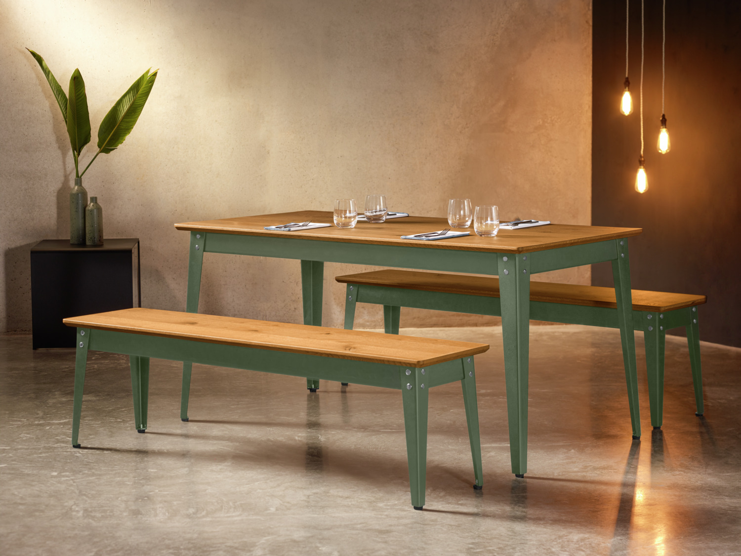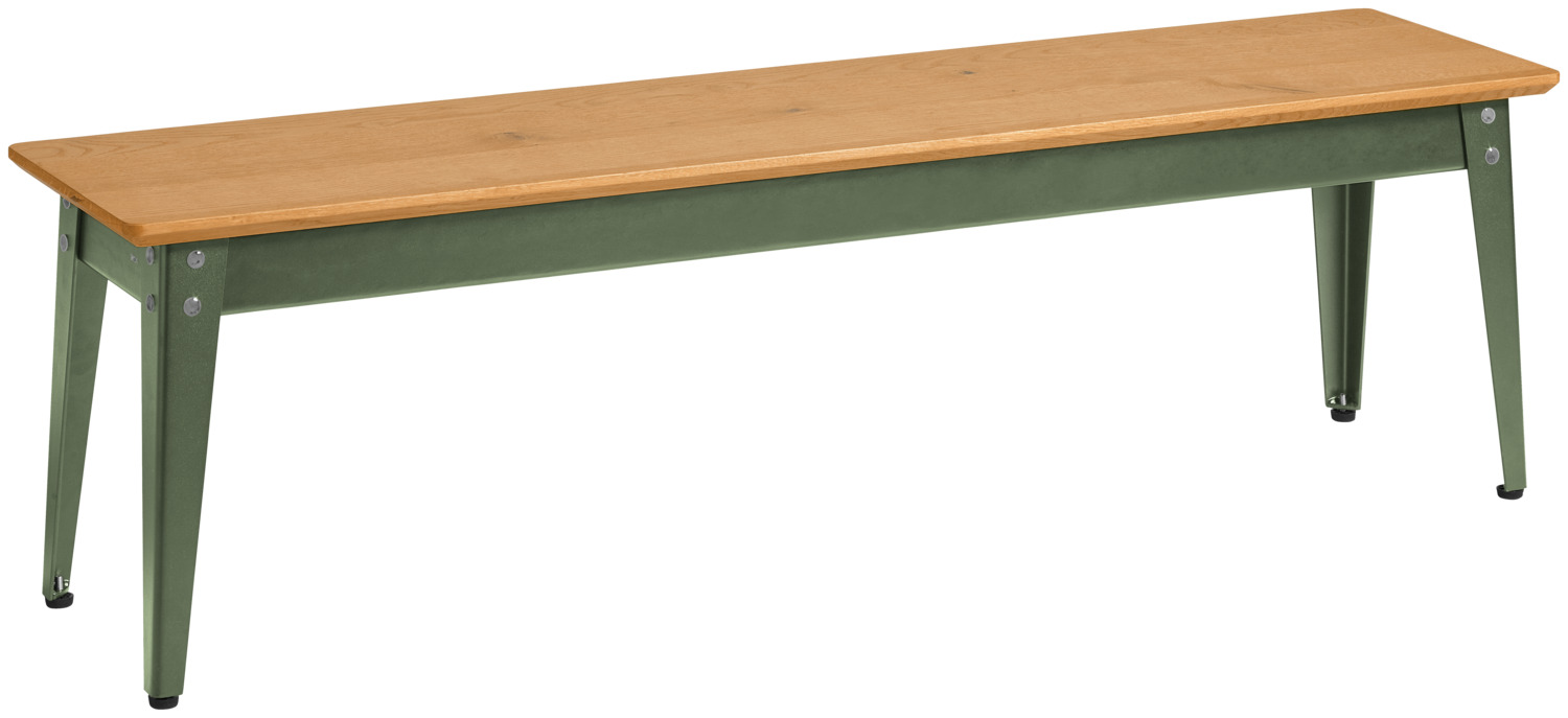 Bench made of powder-coated black steel frame and real wood veneered material top as seat. Equipped with adjustable glides. Easy to clean. Only suitable for indoor use. Please order matching table of the series Acerios at the same time.