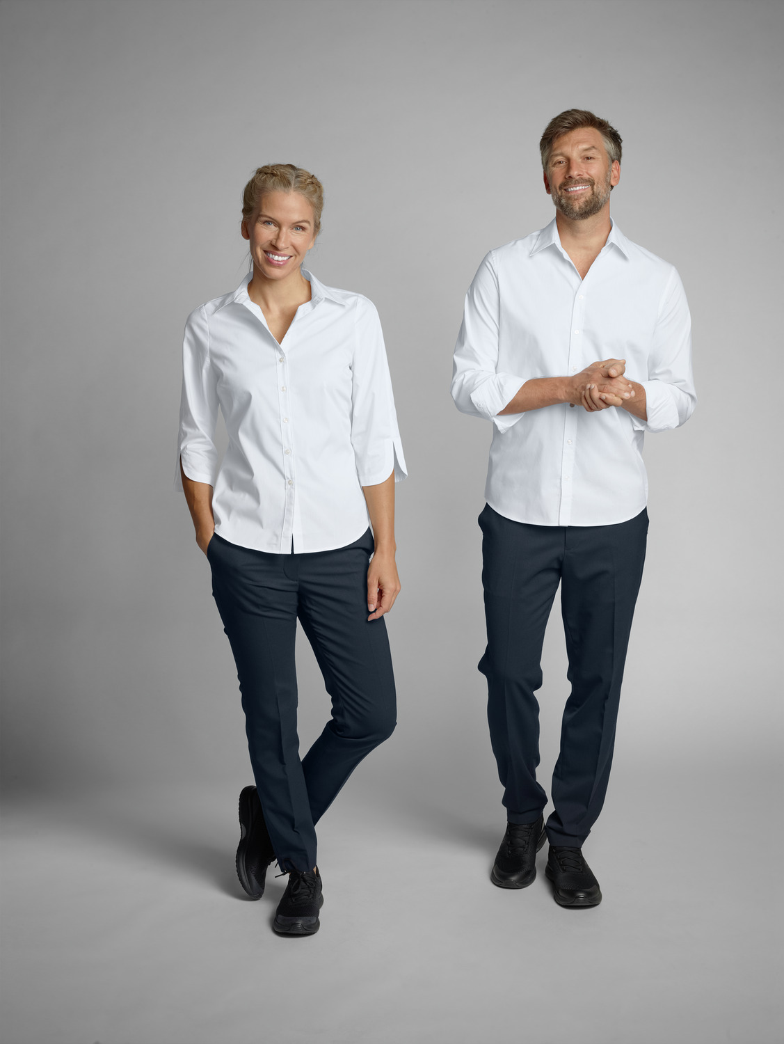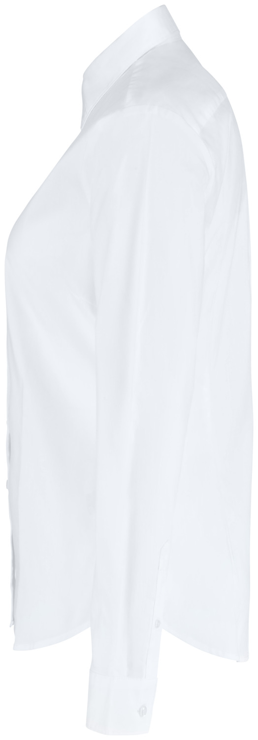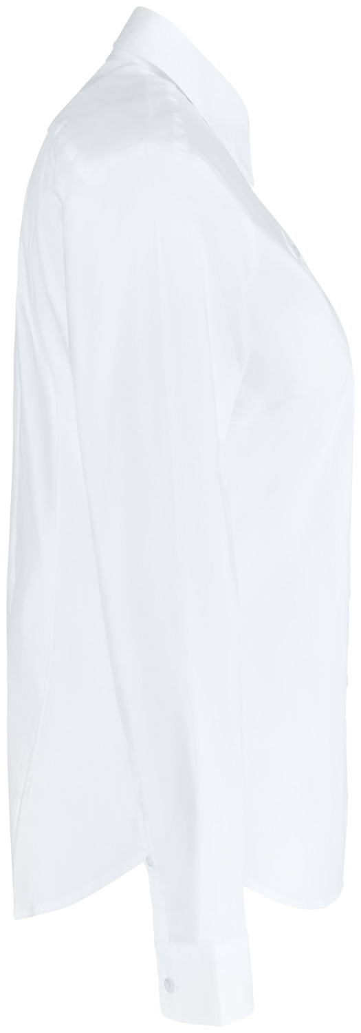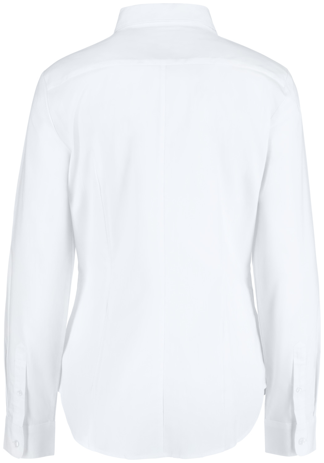 67% cotton, 33% polyester. 30°C wash. Classic, long-sleeved lwomen’s blouse with visible button placket, shirt collar and sleeve cuffs. With short bust darts and waist seams at the back for a perfect fit. Extra-long back and rounded hem. Particularly easy-care and easy-iron thanks to the polyester content. Regular fit. Back length: 68 cm for size 36.