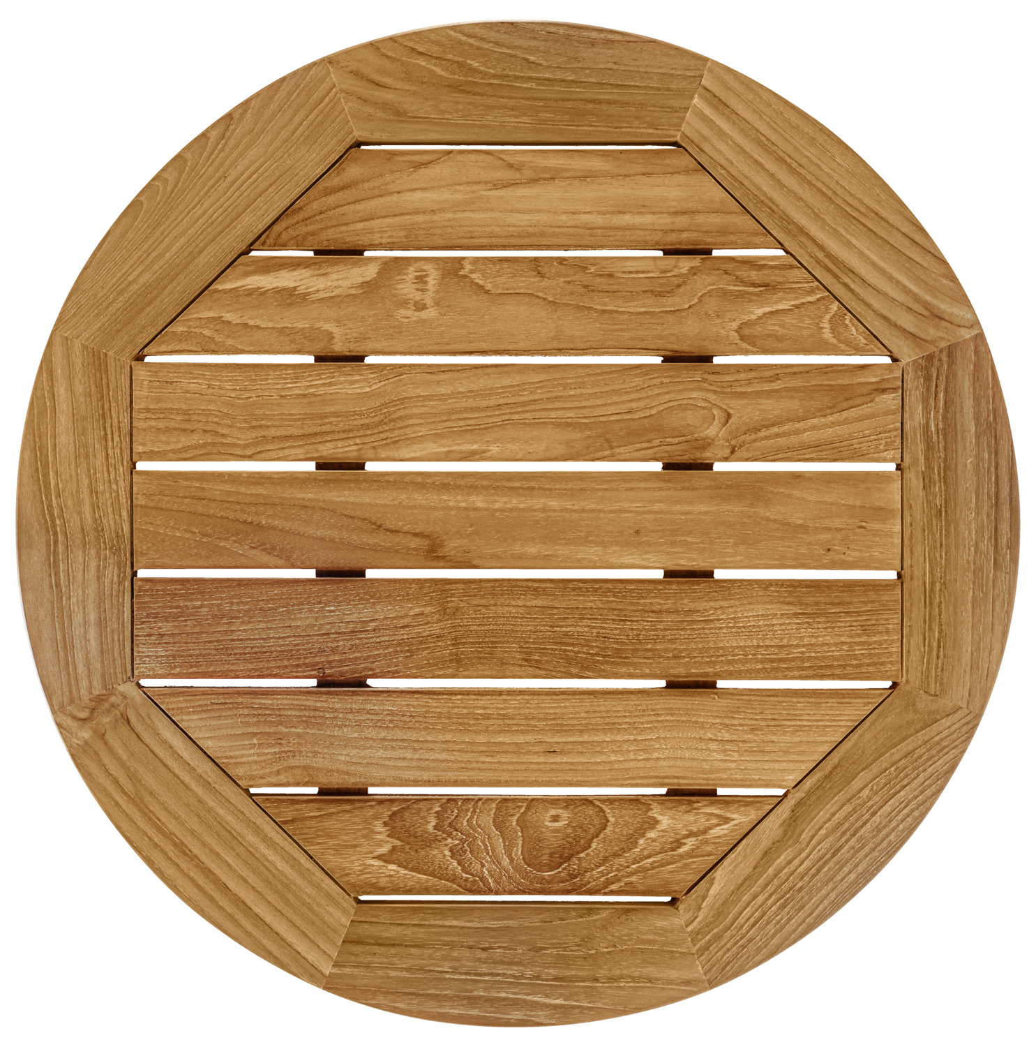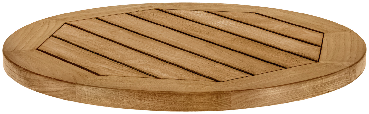 This high-quality outdoor table top made of solid teak has been specially developed for professional use in restaurants, cafés, bars, hotels and beer gardens. It is the ideal choice for all catering establishments that rely on durable, stylish and authentic outdoor catering furniture. Made from FSC®-certified teak of quality class A, the table top impresses with its exceptional robustness, high weather resistance and elegant, natural look. This makes it perfect for heavily frequented patio and outdoor areas. With a material thickness of 3 cm, the round table top offers maximum stability and a particularly high-quality feel – a noticeable difference in quality in everyday catering use. The surface is weatherproof and UV-resistant and retains its shape and function even in intense sunlight and changing weather conditions. Thanks to various size options, the teak table top can be flexibly combined with different catering table columns and frames. Matching table columns can be ordered at the same time – for a customised and professional patio solution. **Care instructions for teak – natural or oiled** Our teak table tops are made of high-quality, untreated teak that retains its natural quality even when exposed to intensive weathering – ideal for heavily frequented outdoor areas in the catering industry. We recommend allowing the table tops to weather naturally. This creates the popular, elegant silver-grey patina that gives teak its special character. (as shown in the 4th picture) All you need for regular cleaning is warm water and a soft brush – simple, quick and perfect for everyday catering. If you want to preserve the original, warm wood colour, treat the table top once or twice a year with special teak oil. Please clean thoroughly beforehand. * Solid teak table top for professional outdoor catering * FSC®-certified, high-quality real wood * Weatherproof, UV-resistant and extremely durable * 3 cm thick design for maximum stability * Natural, high-quality look with elegant patina finish * Easy to clean in daily catering operations * Available in several sizes * Can be combined with numerous catering table columns and bases This teak outdoor table top combines natural elegance with uncompromising resilience and is the perfect solution for high-quality patio and outdoor concepts in the catering industry.