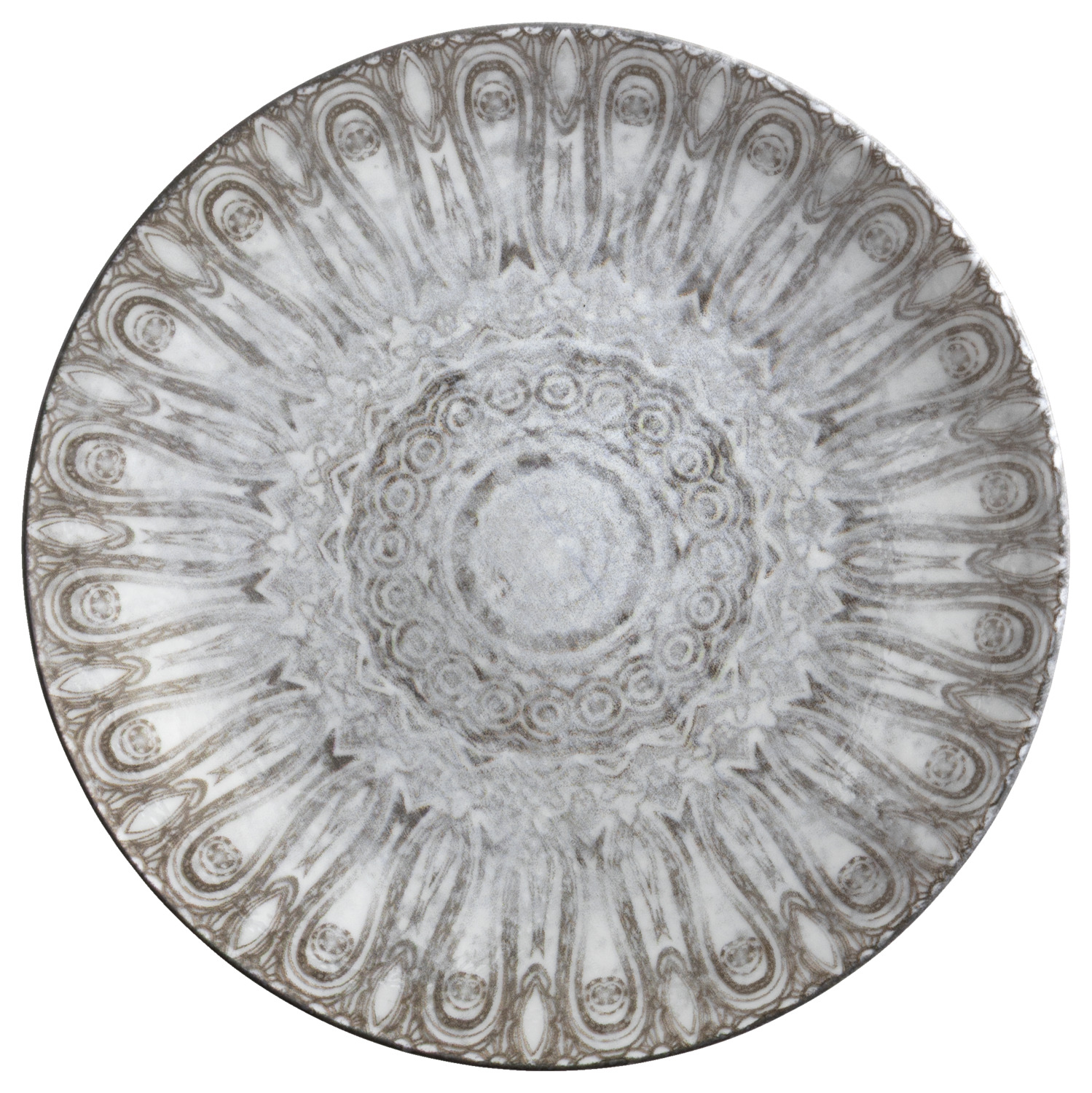 Colored porcelain plates finished with digital print. Versatile and combinable. Without flag. Dishwasher safe and microwaveable. Please note that the designs vary depending on the size of the plate. The decor, inspired by mandalas and kaleidoscopes, gives your dishes a special radiance thanks to the soft colors and lets them shine in the best light.