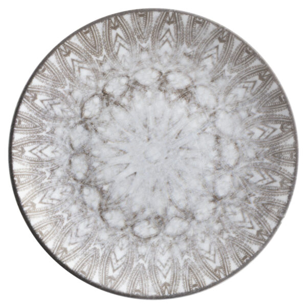 Colored porcelain plates finished with digital printing. Can be used and combined in a variety of ways. Without flag. Dishwasher safe and microwaveable. Please note that the designs vary depending on the size of the plate. The decor, inspired by mandalas and kaleidoscopes, gives your dishes a special radiance thanks to the soft colors and lets them shine in the best light.