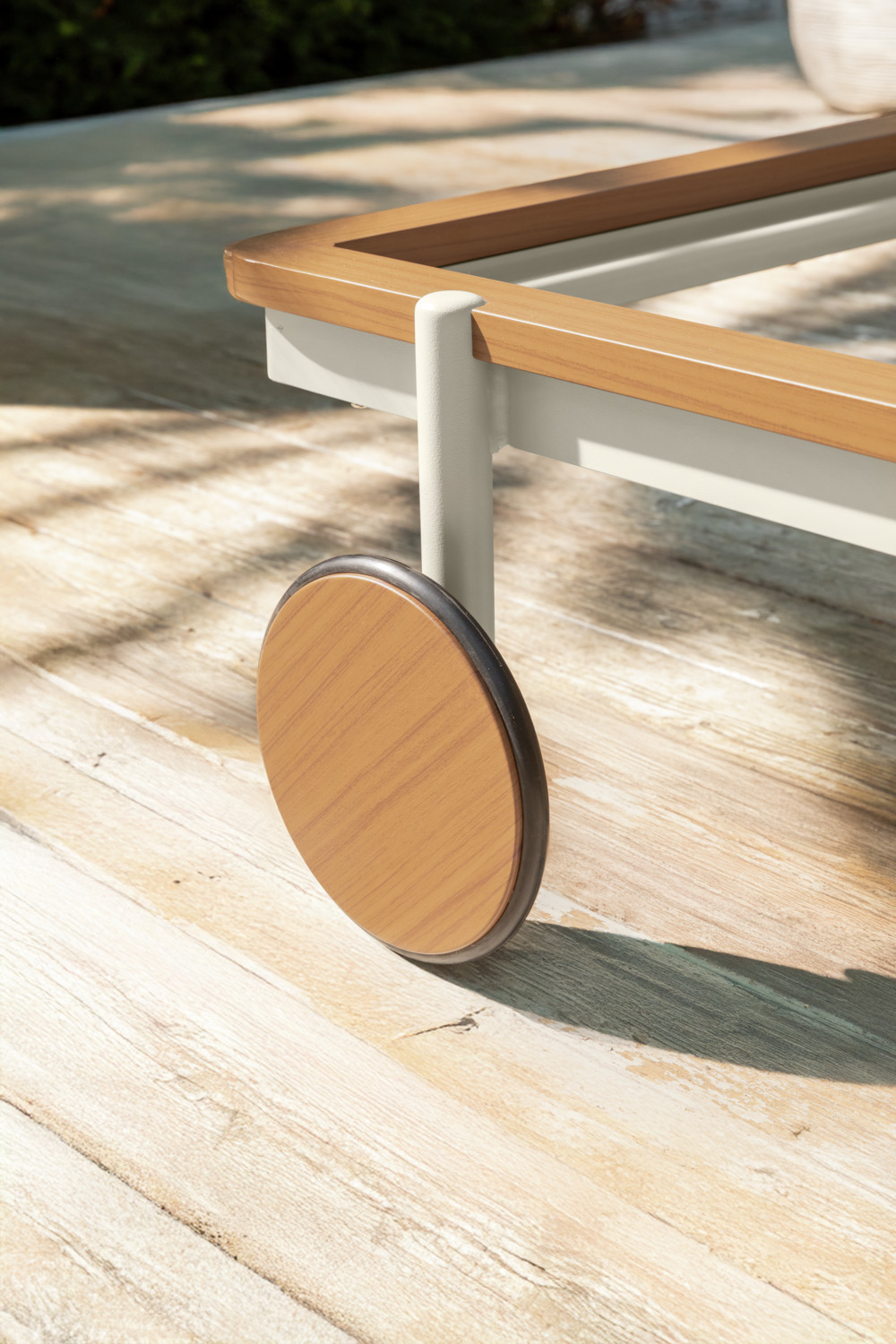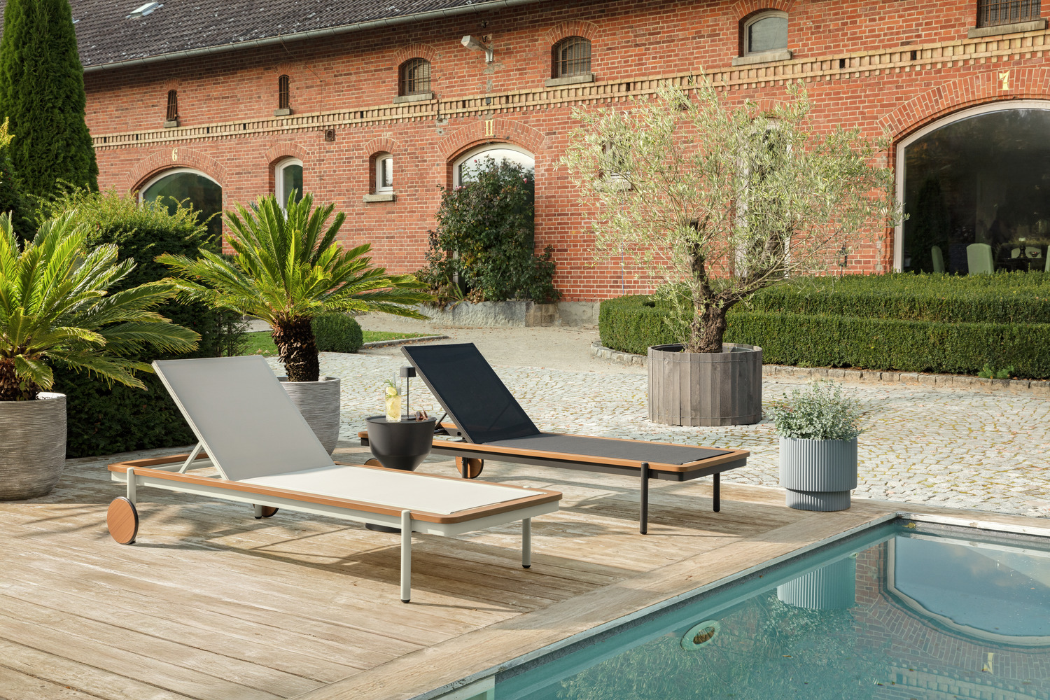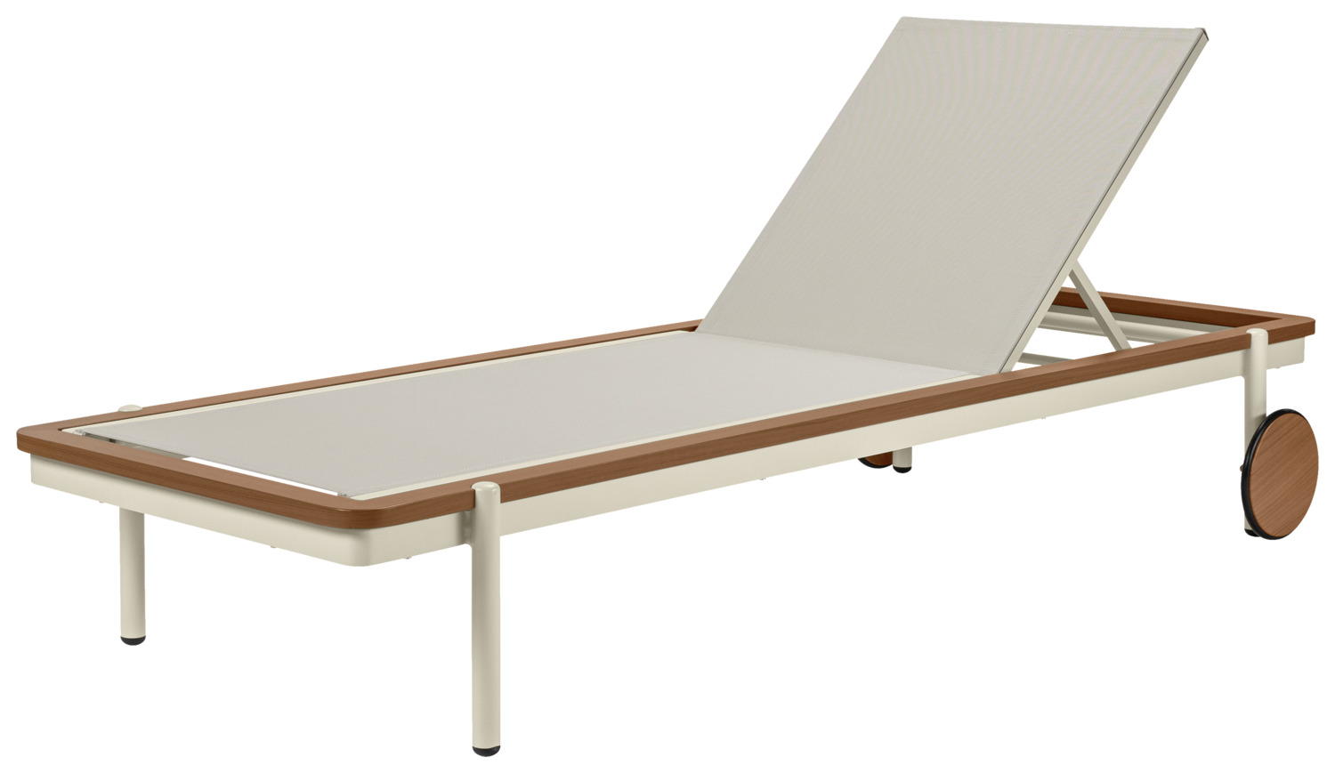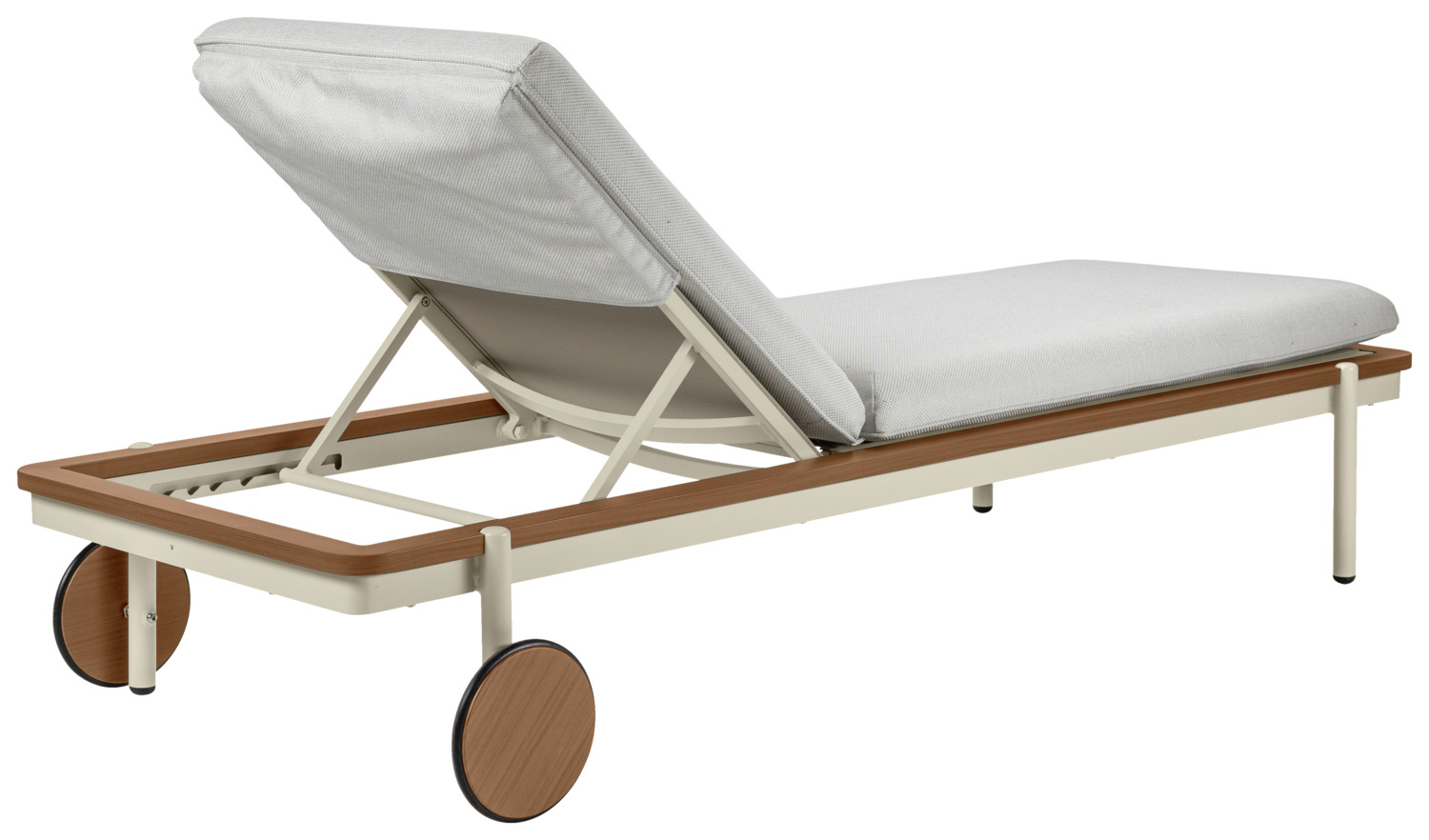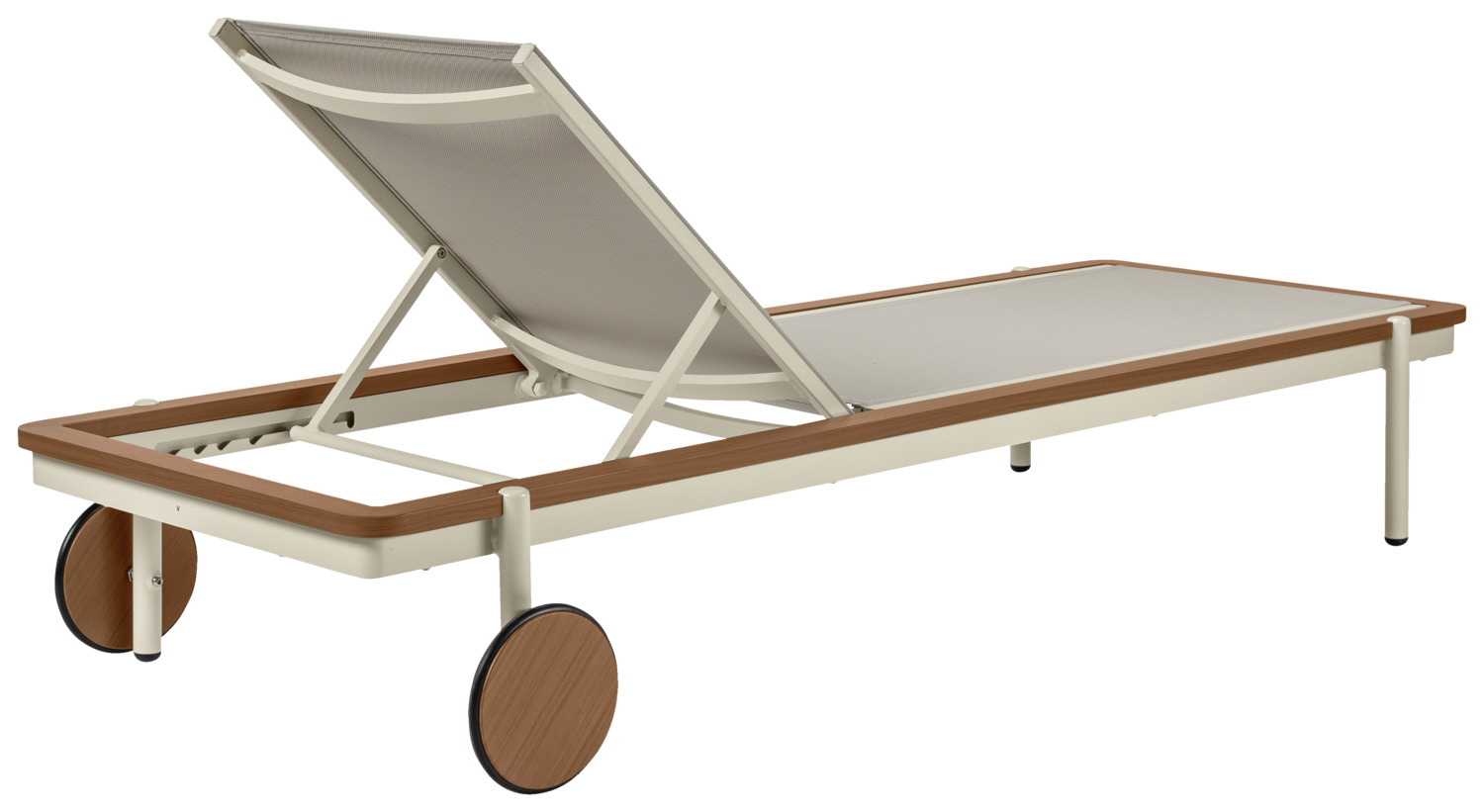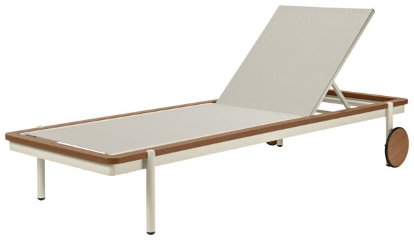 Experience pure relaxation by the pool or in the wellness area with our exclusive sun lounger. The lounger combines maximum comfort with robust outdoor quality, making it the perfect choice for professional applications in wellness and spa areas. The high-quality aluminium frame guarantees stability and durability and is optionally available in an elegant teak wood look – for a natural, luxurious look. Thanks to the practical and large castors, the lounger can be moved effortlessly and positioned flexibly, while the weatherproof, easy-care construction provides reliable protection even in the sun, rain or near the pool. For even more comfort, a matching lounger cushion can be purchased as an optional extra – perfect for longer sunbathing sessions or relaxing wellness moments. Advantages at a glance: * Robust, durable aluminium frame – optionally in teak wood look * Suitable for outdoor use, weatherproof and easy to clean * Easy to move thanks to integrated castors * Ideal for patios, pools, wellness and spa areas * Matching lounger cushion optionally available for maximum comfort With this sun lounger, you are investing in stylish design, high-quality materials and excellent lounging comfort – a must-have for any exclusive outdoor oasis.