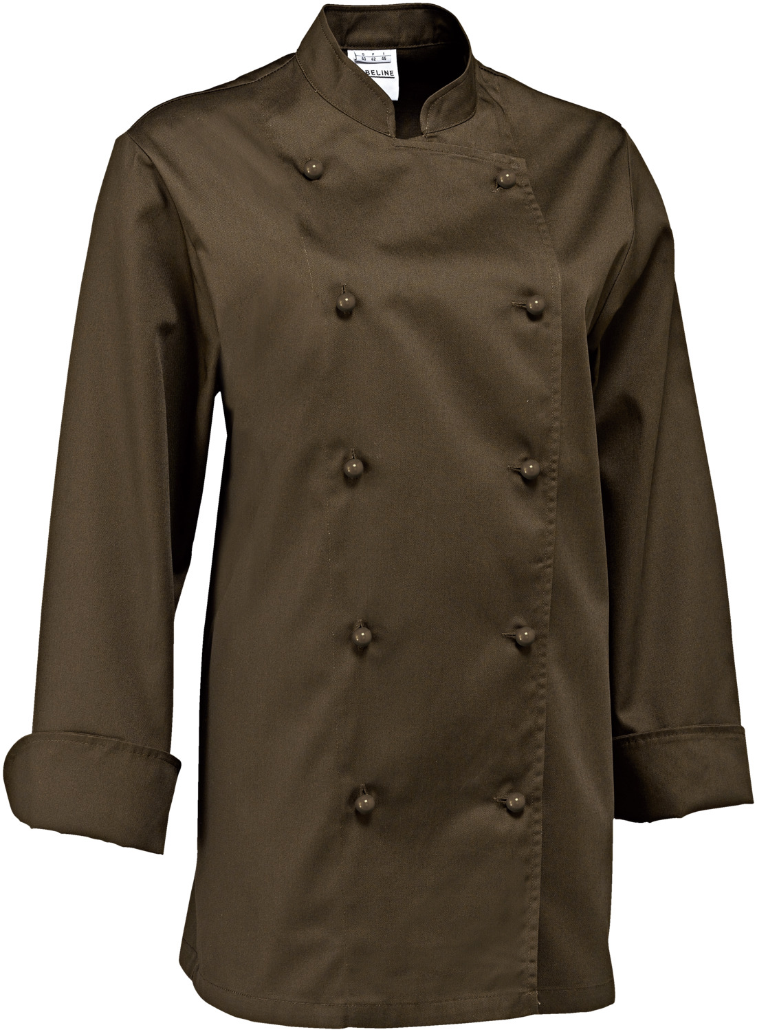 65 % polyester, 3 5% cotton. 200 g/m². 60 °C wash Classic, robust women’s chef jacket made of durable and pleasant mixed quality in long sleeves. With two-rowed 5-button closure. Chef jacket also available in half sleeve. Straight cut with highest wearing comfort. Supplied with button placket and matching ball buttons. Back length: 73.5 cm for size 36.