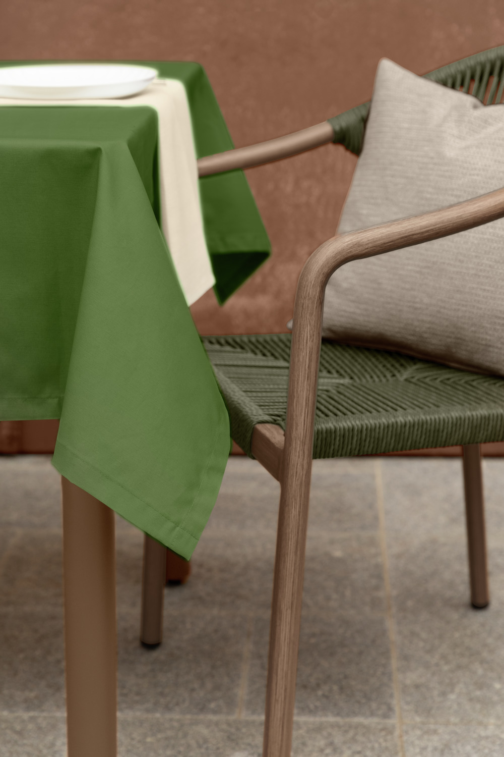##Lasolana outdoor fabrics by the metre – stain-resistant and lightfast The Lasolana outdoor metre fabric is the perfect choice for a wide range of outdoor designs. Made from 52% polyester and 48% cotton, it impresses with its durability and long service life. The special acrylic coating makes the fabric water-repellent, dirt-resistant and easy to clean. The simple, monochrome design in fresh, summery colours creates a lively look on any table. Thanks to its high lightfastness, the colours remain brilliant and true even after prolonged exposure to sunlight. Can be cut to size in a variety of ways, ideal for customised outdoor projects. * Blended fabric made from 52% polyester, 48% cotton * Weight approx. 190 g/m² * Acrylic surface coating for stain and water repellence * Stain-resistant and wipeable with a damp cloth * High light fastness, colourfast even under UV radiation * For indoor and protected outdoor use * Can be cut to desired size Care tip: Iron on the reverse after each wash to activate the coating and ensure durability – not suitable for mangles.