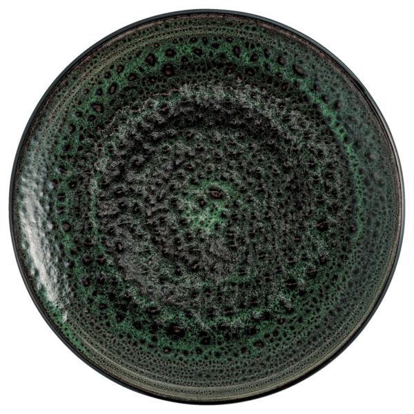 The Black Reef flat plate is a well-designed catering plate for modern, sophisticated food concepts. The deep dark glaze with green nuances and speckled structure gives each plate an individual character and effectively sets the scene for dishes – from starters to main courses. Made from high-quality hard porcelain, the plate impresses with its high impact resistance and scratch resistance, making it ideal for intensive use in restaurants, hotels and catering. The dark surface provides strong contrasts to fresh ingredients and supports a clear, contemporary presentation. The plate is dishwasher-safe, microwave-safe and temperature-resistant and can be flexibly integrated into fine dining, à la carte and buffet concepts. The different diameters enable a consistent table design with high recognisability.