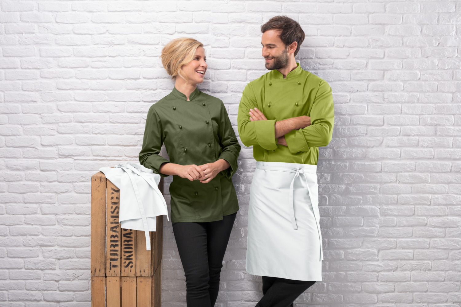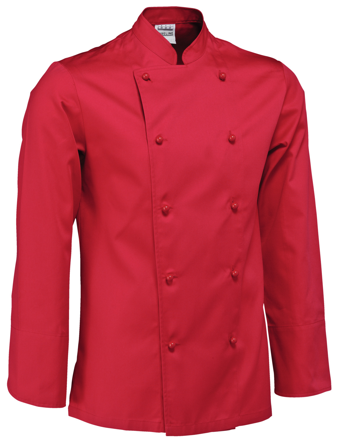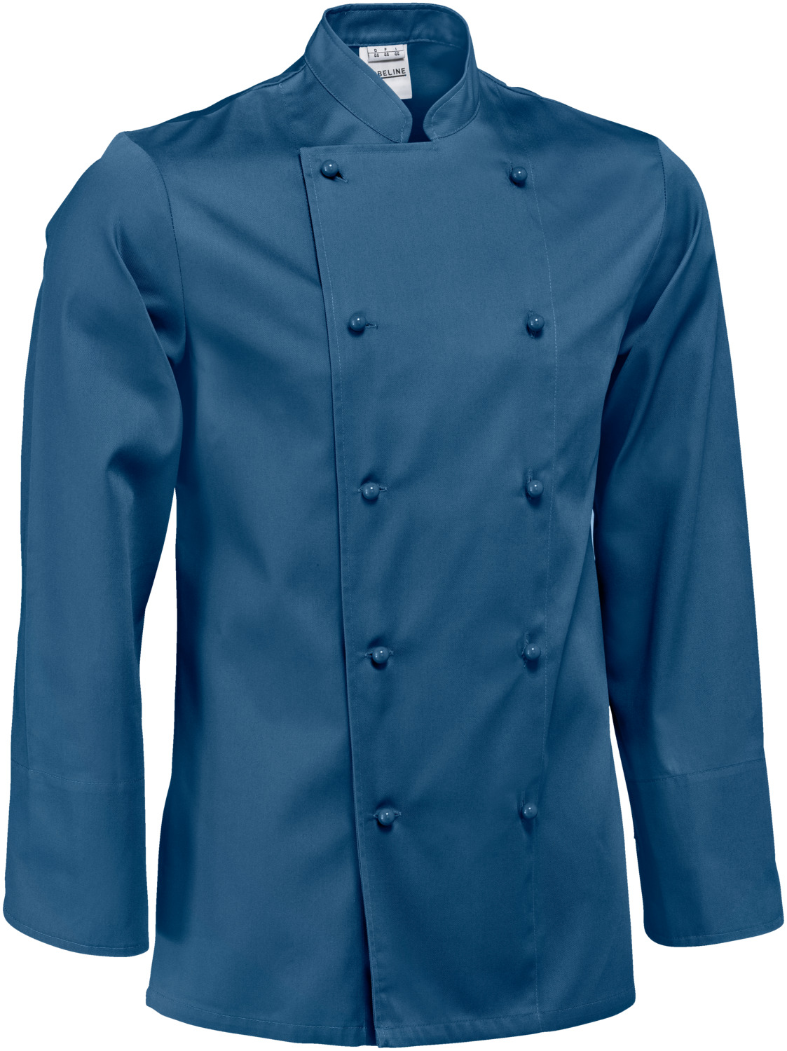 65% polyester, 35% cotton. 200 g/m². 60°C wash Classic, robust men’s chef jacket made of durable and pleasant mixed quality in long sleeves. With two-rowed 5-button closure. Chef jacket also available in half sleeve. Straight cut with highest wearing comfort. Delivery includes button placket and matching ball buttons. Back length: 79 cm for size 50.