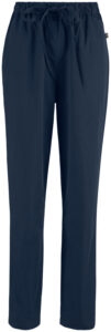 64% polyester, 34% cotton, 2% spandex. 230 g/m². 60°C wash. Modern chef trousers with pleats for men made from a functional and slightly elastic ripstop fabric. With a comfortable stretch waistband at the sides, two piped back pockets and side slit pockets. The waistband has belt loops and a classic button fastening. Comfortable rise with a tapered leg. Inside leg length: 79 cm for size 50.