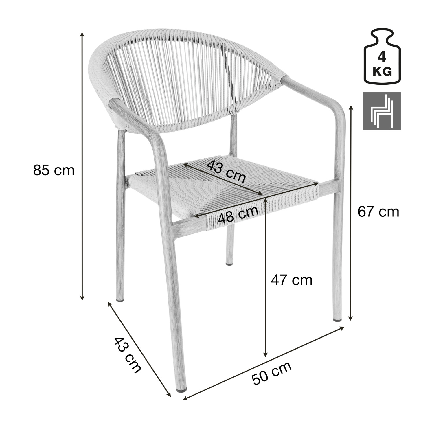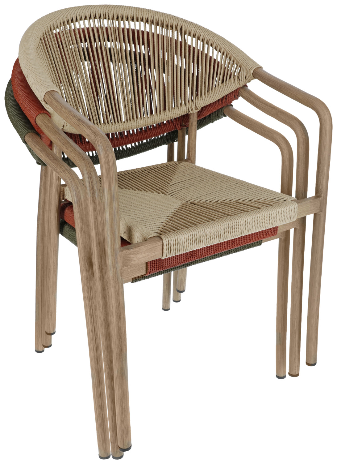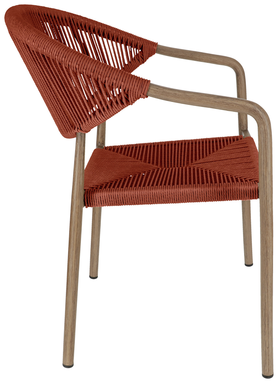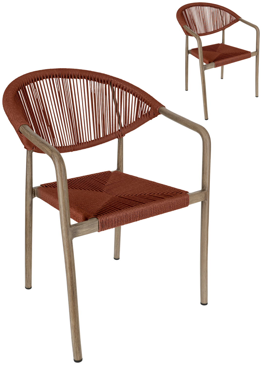 Choose an outdoor chair that perfectly combines design and function for your restaurant, café or hotel. The sturdy aluminium frame in a modern wood look provides a professional look, while the robust Rope polyester covering can withstand the toughest demands of everyday catering. The chair is weatherproof, UV-resistant and quick-drying – ideal for outdoor areas that are frequently cleaned or used in all weathers. Thanks to the stackable design, you can stow your seating quickly and efficiently, which is a great advantage, especially when changing usage times or events. Plastic glides protect floor surfaces and make handling easier. The outdoor chair is supplied fully assembled – perfect for quick set-up without additional effort. * Gastro outdoor chair with aluminium frame in a modern wood look * Hard-wearing Rope covering – ideal for the catering and hotel industry * Weatherproof patio chair for restaurants, cafés & bars * UV-resistant & quick-drying – perfect for outdoor use * Stackable catering chair – space-saving & flexible * Ready for immediate use thanks to assembled delivery