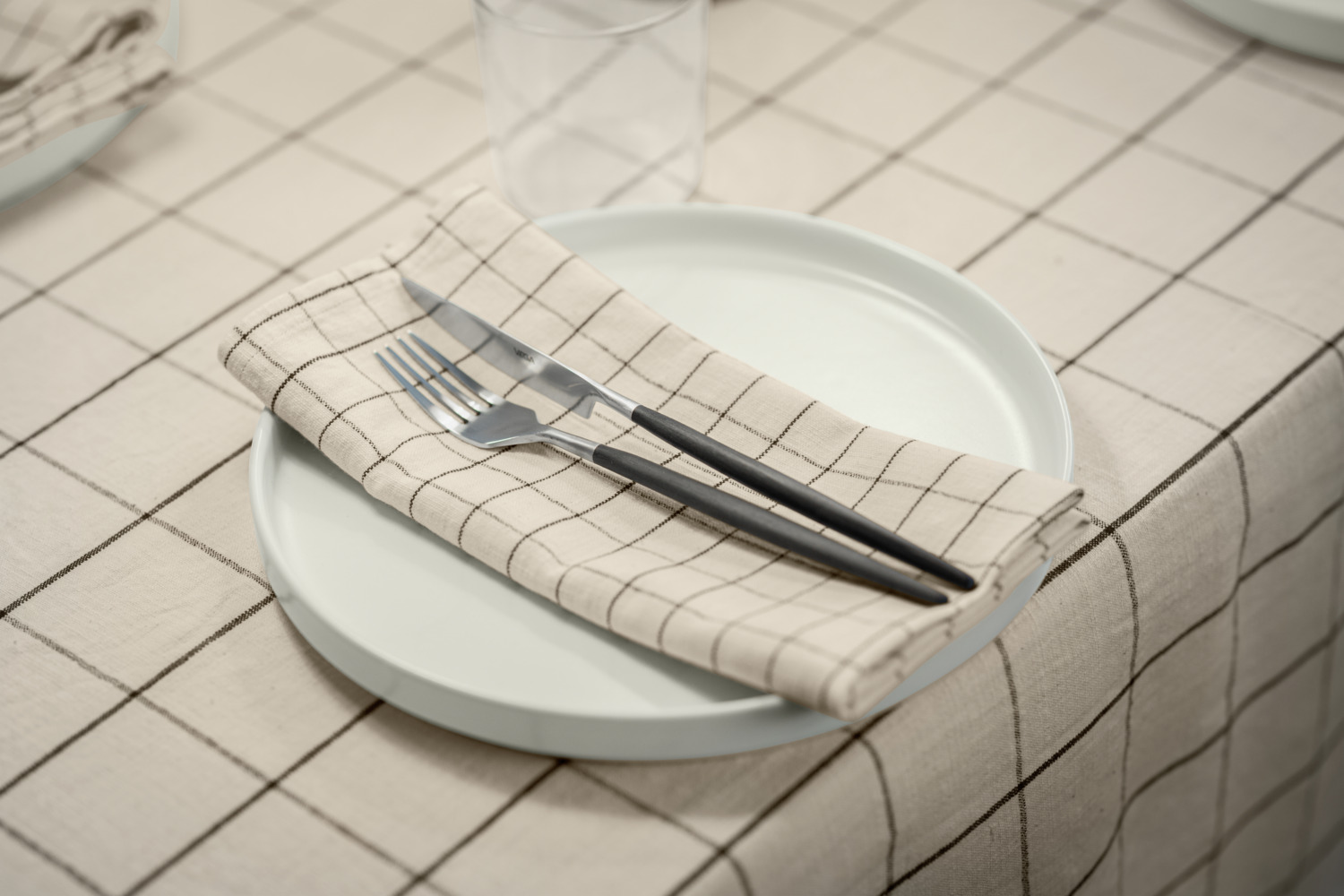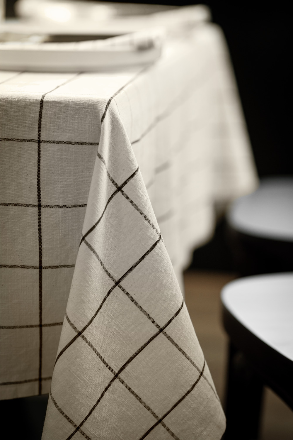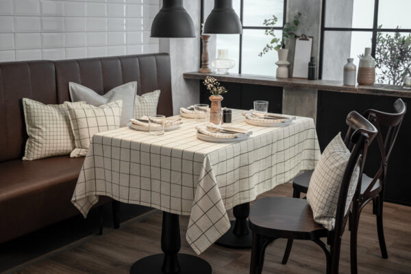 ##Cotton tablecloth Skan large chequered – Natural, light look The Skan tablecloth in a large chequered design made of 100% cotton combines high-quality workmanship with a natural look. The large check pattern in a linen look lends your table an elegant, uncomplicated charm. The textured fabric with an over-check creates an airy, light impression – perfect for everyday wear or festive occasions. Thanks to yarn dyeing, the large check pattern retains its colour intensity even with frequent washing. The durable, easy-care quality made to your desired size makes the tablecloth a timeless accessory that can be interpreted in both modern and traditional styles. * 100 % cotton * Weight approx. 210 g/m² * Large chequered pattern for a stylish, understated look * Finished with 1 cm standard hem or envelope hem * Natural, lightweight look thanks to the textured fabric * Easy-care and hard-wearing * Can be made to measure