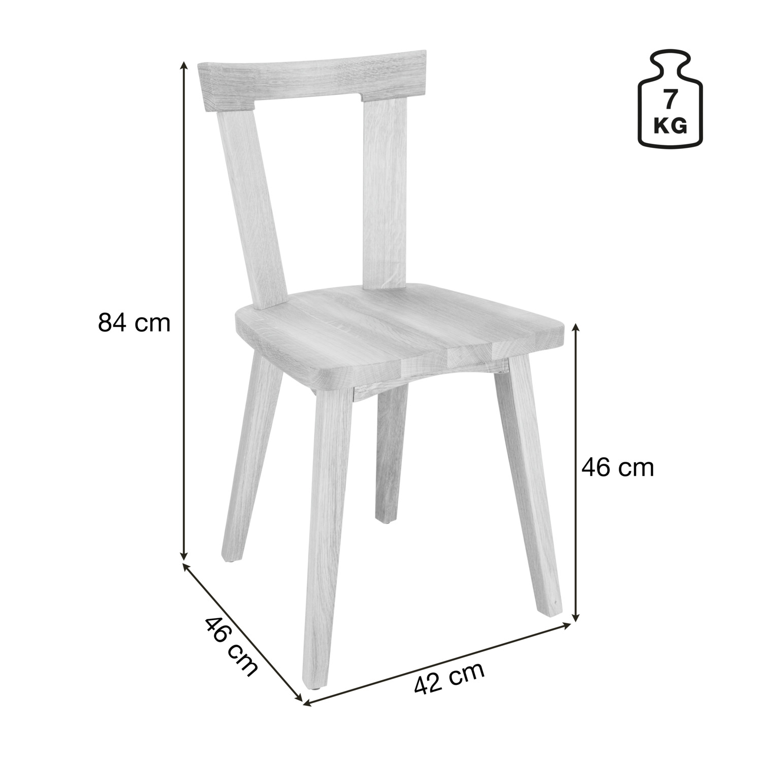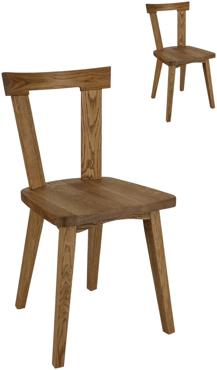 High-quality wooden chair in country house style made of solid oak. High seating comfort thanks to ergonomically shaped seat recess. Plastic glides included. Suitable for indoor use only. Supplied assembled. Order matching seat cushion separately.
